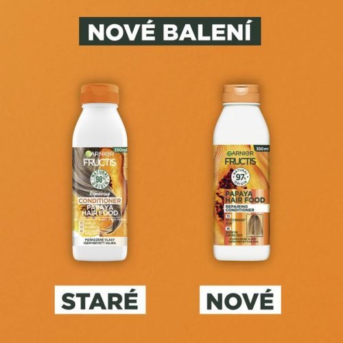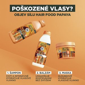Regeneračný papájový Hair Food kondicionér pre poškodené vlasy. Jeho jemná textúra okamžite preniká do vlasov. Vlasy sa jednoducho rozčesávajú, sú intenzívne hydratované a vyzerajú zdravo.