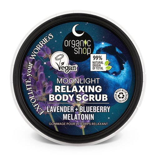 Masáž tela pomocou mesačného telového peelingu je vynikajúcim spôsobom, ako sa uvoľniť a zbaviť sa úzkosti a stresu. Peeling jemne odlupuje odumreté kožné bunky a pomáha obnoviť rovnováhu tela i mysle. Upokojujúca vôňa levandule v kombinácii s výživnými čučoriedkami a melatonínom pomáha omladzovať pokožku a vytvára ukľudňujúcu atmosféru pre hlboký spánok.