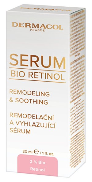 Remodelačné a vyhladzujúce sérum proti vráskam s Bio retinolom viditeľne obnovuje a spevňuje pleť. Vyhladzujúce sérum proti starnutiu pleti využíva silu prírodnej alternatívy retinolu a redukuje vrásky, zlepšuje textúru pokožky a zároveň posilňuje kožnú bariéru. Hodvábne jemné vyhladzujúce sérum okamžite a intenzívne hydratuje pleť a zabraňuje tvorbe jemných liniek a vrások. Remodeluje a vyhladzuje reliéf pokožky a zosvetľuje pigmentové škvrny.