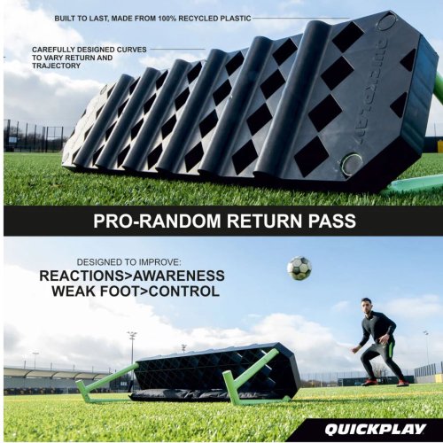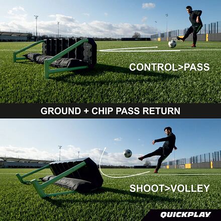 Futbalová odrazová stena Quickplay Replay Station je tréningová pomôcka pre hráčov všetkých výkonnostných úrovní. Replay Station slúži na zlepšenie techniky prihrávok, spracovanie lopty a rýchlejšiu reakciu. Tento nahrávač ponúka nastaviteľný uhol pre pestrejší tréning. Súčasťou balenia je aj vak na piesok, vďaka ktorému bude mať nahrávač lepšiu stabilitu (piesok nie je súčasťou balenia). Vďaka jednoduchému zostaveniu môžete trénovať kdekoľvek a kedykoľvek. Odrazová stena je vhodná nielen pre tréning doma na záhrade, ale aj pre futbalové kluby. - materiál: LDPE, oceľ, polyester - rozmery: 95 x 24 x 38 cm - hmotnosť: cca 6 kg