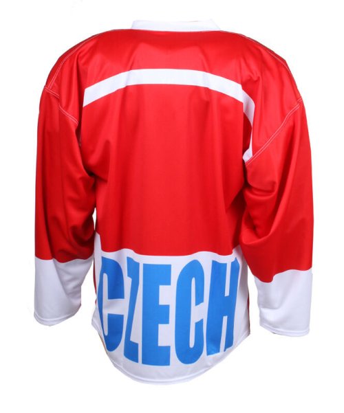 UPOZORNENIE: U ZÁKAZKOVEJ VÝROBY DRESOV S VLASTNÝM POTLAČOM NEZASIELAME TOVAR NA DOBIERKU. VÝROBU VŽDY REALIZUJEME LEN PO PLATBE PREDO CEZ BANKOVÝ ÚČET ČI PLATBE ONLINE KARTOU PRI VYTVÁRANÍ OBJEDNÁVKY! TOVAR VYROBENÝ NA ZÁKAZKU NEDÁ VRACIEŤ. Replika českého hokejového dresu z roku 1998, v ktorom českí hokejisti získali zlatú medailu na Olympijských hrách v Nagane. Na dres si môžete umiestniť vlastné meno a číslo - túto požiadavku uveďte do poznámky v objednávke. Potlač je bez doplatku.