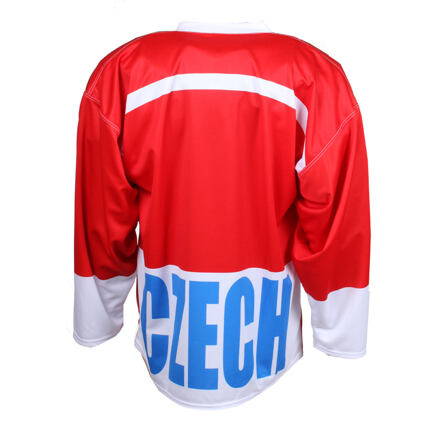 UPOZORNENIE: U ZÁKAZKOVEJ VÝROBY DRESOV S VLASTNÝM POTLAČOM NEZASIELAME TOVAR NA DOBIERKU. VÝROBU VŽDY REALIZUJEME LEN PO PLATBE PREDO CEZ BANKOVÝ ÚČET ČI PLATBE ONLINE KARTOU PRI VYTVÁRANÍ OBJEDNÁVKY! TOVAR VYROBENÝ NA ZÁKAZKU NEDÁ VRACIEŤ. Replika českého hokejového dresu z roku 1998, v ktorom českí hokejisti získali zlatú medailu na Olympijských hrách v Nagane. Na dres si môžete umiestniť vlastné meno a číslo - túto požiadavku uveďte do poznámky v objednávke. Potlač je bez doplatku.