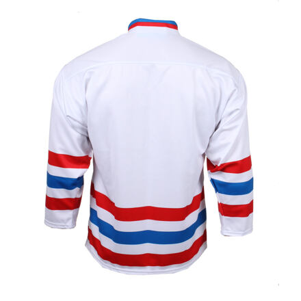 UPOZORNENIE: U ZÁKAZKOVEJ VÝROBY DRESOV S VLASTNÝM POTLAČOM NEZASIELAME TOVAR NA DOBIERKU. VÝROBU VŽDY REALIZUJEME LEN PO PLATBE PREDO CEZ BANKOVÝ ÚČET ČI PLATBE ONLINE KARTOU PRI VYTVÁRANÍ OBJEDNÁVKY! TOVAR VYROBENÝ NA ZÁKAZKU NEDÁ VRACIEŤ. Replika československého hokejového dresu z roku 1976, v ktorom hokejisti získali štvrtú zlatú medailu z majstrovstiev sveta v poľských Katowiciach. Dres je vyrobený zo 100% polyesteru, ponúkame ho v mnohých veľkostiach aj viacerých farebných variantoch.