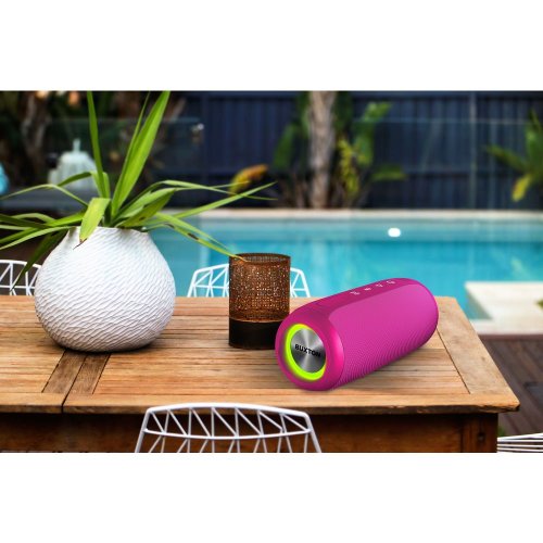 Hrá aj pod vodou! Skúšať to asi nebudete, ale vodeodolnosť reproduktora BBS 5500 je taká super (IPX7), že odolá tekutine, aj keď je pol hodiny ponorený meter pod hladinu! To v praxi znamená, že ho nezastaví ani prietrž mračien. Hrá za sucha aj za dažďa, a to až do vzdialenosti 15 metrov od zdroja muziky. Navyše je jednoducho trendy - potiahnutý ružovou prémiovou tkaninou. A vie si vždy rady – má slot na pamäťovú kartu, AUX-In vstup, stavové LED indikátory, funguje aj ako handsfree a váži len málo cez pol kila. Je to jednoducho borec.
