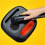 Vďaka funkcii nahrávania záznamu môžete na kartu alebo disk tiež ukladať svoj spev. Súčasťou balenia je totiž bezdrôtový mikrofón , aby ste sa mohli stať hviezdou večera a ukázať svojim blízkym svoj spevácky talent. Na reproduktore navyše nájdete dva 6,3 mm jack konektory na pripojenie 2 hudobných nástrojov.