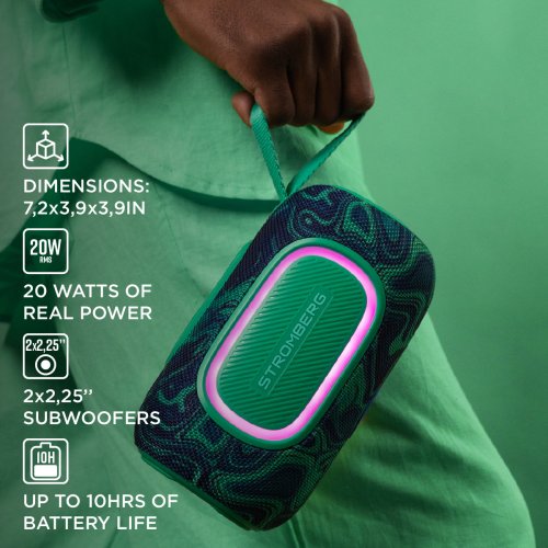 BURST-2 je ideálnou voľbou pre každého, kto nechce robiť kompromisy medzi zvukom, výdržou a vzhľadom. Vďaka funkcii Stromberg Connect (TWS) ľahko spojíte dva reproduktory a vytvoríte pôsobivý stereo efekt. Reproduktor váži len 0,85 kg , takže ho bez problémov vezmete kamkoľvek so sebou. Kombinácia dvoch 2,25" reproduktorov , RGB podsvietenia a jednoduchého ovládania robí z BURST-2 skvelý doplnok pre každú situáciu.
