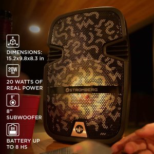 Reproduktor Stromberg DIGITY-2 - silný zvuk, chytré funkcie a kompaktné telo. Vďaka výkonu 20 W RMS a 8" reproduktora prináša čistý a silný zvuk, či už ste doma alebo vonku. Vstavaná batéria 1500 mAh zaistí až 8 hodín prehrávania na jedno nabitie bez prerušenia.