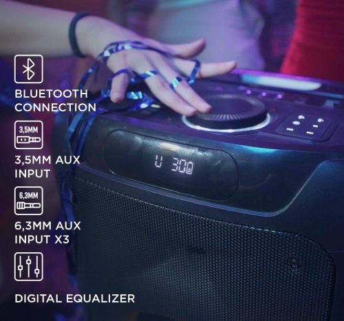 Vďaka dvom 12" subwooferom a 3" tweeteru ponúkne TEMPO-2 mohutný zvukový výstup, ktorý ozvučí aj väčší priestor. Balenie zahŕňa káblový mikrofón , ktorý oceníte pri moderovaní, speve alebo prezentácii. Možnosť pripojiť ďalšie dva mikrofóny robí z tohto reproduktora ideálny nástroj pre karaoke show alebo spoločenské akcie.