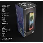 Stromberg TEMPO-2 prináša poriadnu dávku zvuku, svetla a zábavy. Výkonný Bluetooth reproduktor s výkonom 120 W s RGB LED podsvietením rozžiari každú párty. V balení nájdete aj mikrofón , s ktorým si užijete karaoke aj moderovanie. Vďaka funkcii Stromberg Connect môžete prepojiť dve jednotky TEMPO-2 a vytvoriť skutočný stereo zážitok. S výdržou až 6,2 hodiny na jedno nabitie zvládnete v pohode ozvučiť aj dlhší večierok.