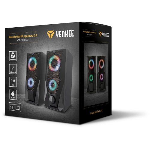 Stolná 2kanálová reprosústava Yenkee YSP 2003RGB as integrovaným podsvietením zaručene zapadne do každého herného kútika , kedy všetkým zarputilým hráčom zaručí vysokú kvalitu reprodukcie zvuku pre nezabudnuteľné dojmy a zážitky z rozličných herných svetov. Dva 2,5″ vysokofrekvenčných reproduktorov o celkovom akustickom výkone 6 W RMS ponúka frekvenčnú odozvu 160 Hz až 20 kHz , kedy parádne ozvučí menšiu či strednú miestnosť, kedy reguláciu hlasitosti obstará koliesko na prednom paneli. Tento systém vám tak sprostredkuje bohatý a plný zvuk, ktorý dokonale dokreslí atmosféru multimédií , ako sú počítačové hry, hudba, filmy, seriály aj dokumenty.