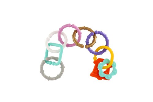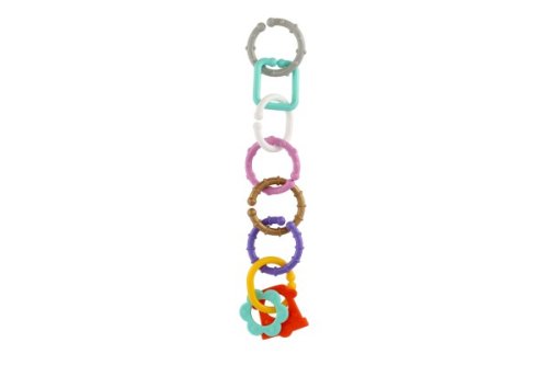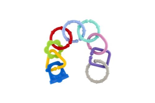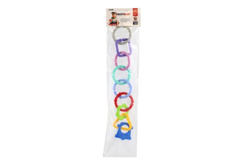 Plastová reťaz pre najmenších. Reťaz je tvorená 8 dielikmi rôznych geometrických tvarov. Každý dielik má veľkosť 6 cm. Z jednotlivých častí je možné vytvoriť krásnu, rôzne dlhú reťaz, presne podľa Vašich predstáv. Pestrofarebná hračka bábätko okamžite zaujme a zabaví na dlhú dobu. V sáčku 11x48x3 cm. Vhodné od narodenia.