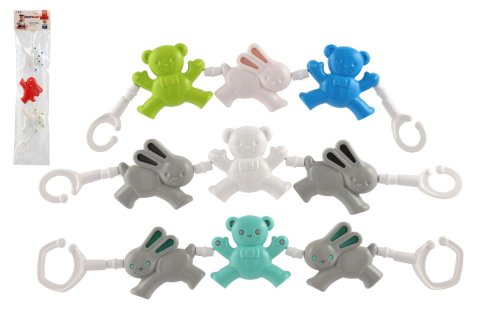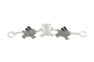 Plastová reťaz na kočík so zvieratkami zabaví deti pri jazde v kočíku. Rôzne tvary a materiály rozvíjajú jemnú motoriku, veselé farby rozvíjajú detské zmysly.