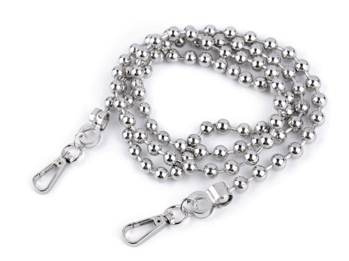 Kovovú guličkovú retiazku využijete na menšie kabelky, listové kabelky či puzdrá na mobilné telefóny. Na oboch jeho koncoch nájdete pripevnené karabinky. Retiazka nie je určená na veľkú záťaž.