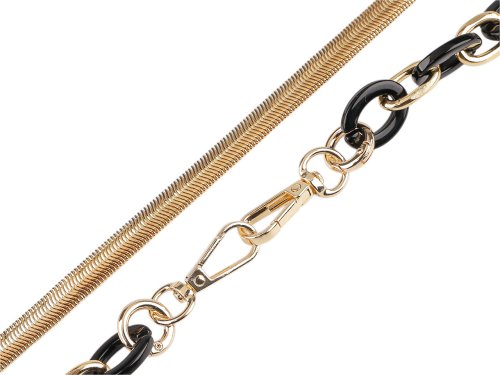 Kovovú retiazku v hadom štýle využijete na kabelky a listové kabelky. Karabínky umožňujú jeho rýchle a jednoduché pripevnenie. Retiazka je plochá, svojím spracovaním pripomína hada a pohyby jeho tela. Na oboch koncoch retiazky sú zakomponované plastové oká. Šírka plastových očiek je 18 mm.