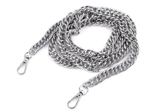Kovová retiazka je vhodná na menšie kabelky, listové kabelky a puzdrá na mobilné telefóny. Na oboch jeho koncoch nájdete pripevnené karabínky. Retiazka nie je určená na veľkú záťaž. Variant č. 2 (ružové zlato) má šírku 8 mm a dĺžku 110 cm.