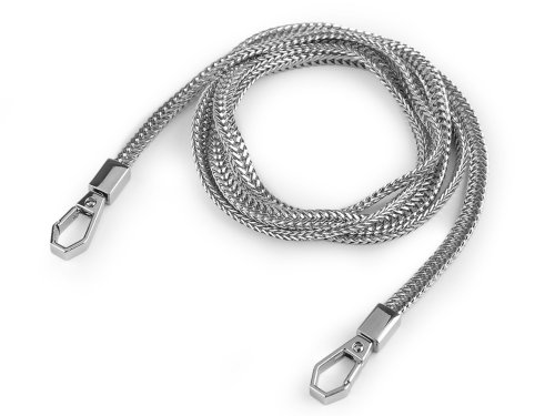 Plochá retiazka vyniká svojim kvalitným spracovaním a vysokým leskom. Využijete ho na menšie kabelky a listové kabelky. Na oboch jeho koncoch nájdete pripevnené karabínky, ktoré majú nevšedný hranatý dizajn. Retiazka nie je určená na veľkú záťaž.