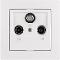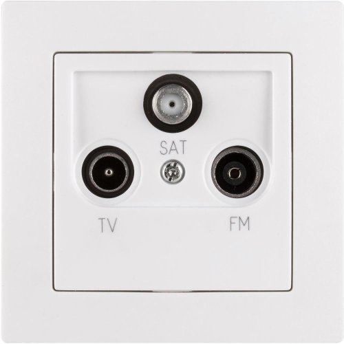 Zásuvka TV+R+SAT rady AMY s rámčekom, priebežná Zásuvka na zapojenie anténnych káblov televízie, rádia alebo satelitu Biela farba