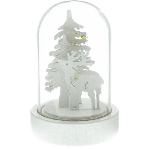 Vianočná sklenená kopulka s dreveným dekorom 1 LED Farba svetla: teplá biela Rozmery: 5,5 x 5,5 x 9 cm Vhodné iba pre vnútorné použitie (IP 20) Napájanie: 1x CR2032 Batérie sú súčasťou balenia