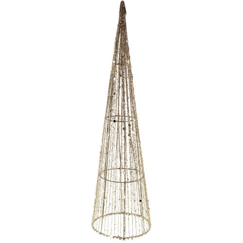 Vianočná dekorácia - kužeľ z bavlnenej priadze s trblietkami 20 LED Farba svetla: teplá biela Rozmery: 600 x 160 x 160 mm Vhodné iba pre vnútorné použitie (IP 20) Napájanie: 2xAA Batérie nie sú súčasťou balenia