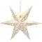 Hviezda vianočná šesťcípa Materiál: Zmes papiera a bavlny Farba zlatá 10LED Farba svetla: teplá biela Napájanie: 3xAA Časovač: 6/18 h Priemer hviezdy: 60cm Batérie nie sú súčasťou balenia