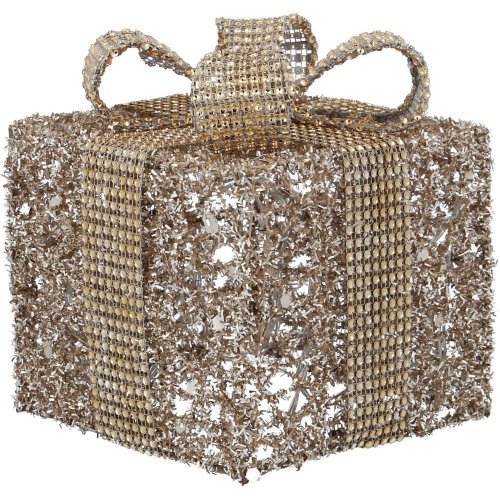 Drôtená dekorácia v tvare darčeka s trblietkami 10LED Časovač: 6/18 h Rozmery: 15 x 15 x 15 cm Farba svetla: teplá biela Počet LED: 10 Napájanie 2x AA (nie sú súčasťou balenia) Pre vnútorné použitie Krytie: IP 20