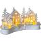 Vianočná dedinka s LED Materiál biele drevo Farba LED teplá biela Veľkosť 30 x 15 x 16,5 cm Počet LED 6 Napájanie batérie 2 x AA (nie sú súčasťou balenia) Krytie IP20