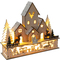 Vianočná dedinka s LED Materiál drevo Farba LED teplá biela Veľkosť 30 x 10 x 25 cm Počet LED 9 Napájanie batérie 2 x AA (nie sú súčasťou balenia) Krytie IP20
