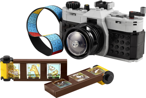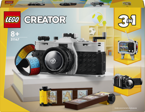 Inšpirujte deti od 8 rokov k nápaditému hraniu so stavebnicou LEGO® Creator 3 v 1 (31147) Retro fotoaparát. Model fotoaparátu má pohyblivý objektív, na hornej strane nájdete tlačidlá na vytvorenie fotografie a vzadu je otvor, do ktorého môžete umiestniť film z kociek a farebný textilný pásik na nosenie. Súčasťou je aj 6 samolepiek, ktoré predstavujú fotografie a deti ich nalepia na jednotlivé filmové políčka.