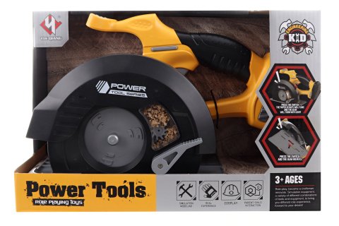 Podarená zmenšenina píly. Napájanie na 3 AAA batérie, ktoré nie sú súčasťou balenia. Po vložení batérií píla svieti, vydáva zvuky a kotúč sa točí. Materiál plast. Balené v otvorenej krabici. Rozmery výrobku cca 28x17x10 cm. Rozmery balenia cca 30x22x12 cm. Vek 3+