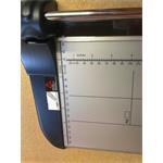 Kvalitná koliesková rezačka s pevnou kovovou základňou a reznou hlavou umiestnenou na kovovej tyči, určená pre formát A3. Pracovný stôl je vybavený natlačenými mierkami a prítlačnou lištou z priehľadného plastu.