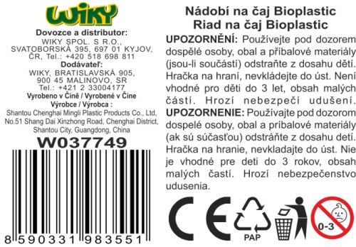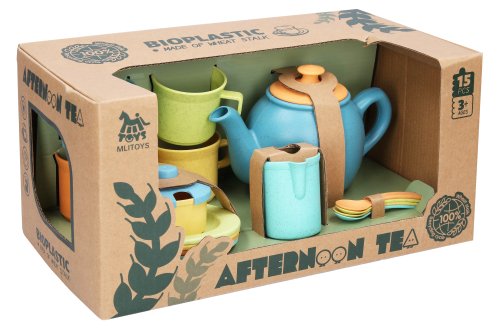 Riad na čaj Bioplastic. Kanvička s pokrievkou, 4 taniere, 4 šálky, 4 lyžičky a ďalšie.