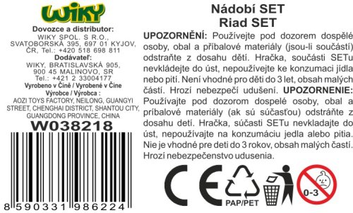 Riad sada 15ks. Obsahuje tácku 24cm, kanvicu 11cm, 2x hrnček 6cm, 4x tanierik 5,5cm, 4x tanierik 7cm.