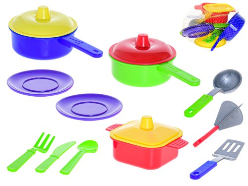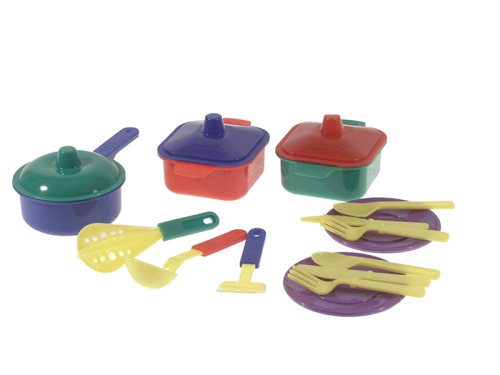 Neviete si rady s deťmi v kuchyni? Zaobstarajte im kuchárske náčinie, nech môžu variť s vami. Sada obsahuje panvičky, hrniec, sadu príborov a taniere. Vhodné pre deti od 3 rokov.