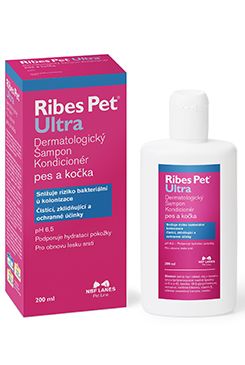 Ribes Pet Ultra dermatologický šampón a kondicionér pre psy a mačky. Znižuje riziko bakteriálnej kolonizácie kože. S čistiacim, upokojujúcim a ochranným účinkom.