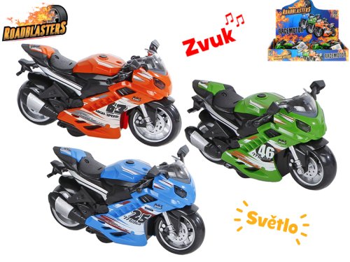 Roadblasters motorka 14,5 cm na zotrvačník na batérie so svetlom a zvukom - mix farieb (zelená, modrá, oranžová)