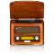 CD, CDR, CDRW, MP3 Analógové rádio AM, FM Vstup USB Možnosť nahrávania na USB Výstup na slúchadlá Diaľkové ovládanie LCD displej Klasická stupnica s podsvietením v jantárovej farbe Výkon 2x2,5 W RMS, 40W PMPO