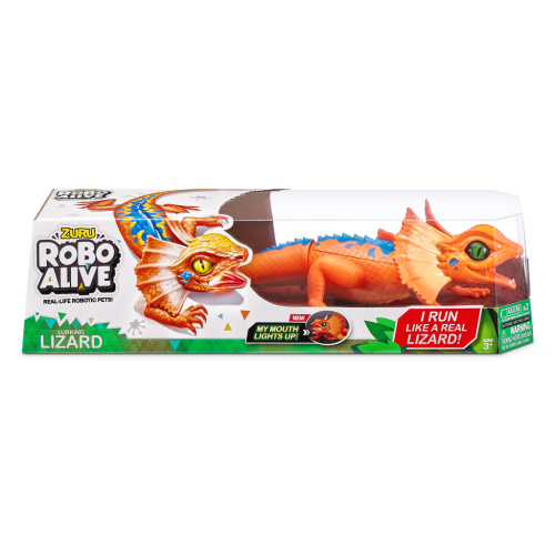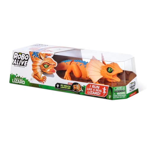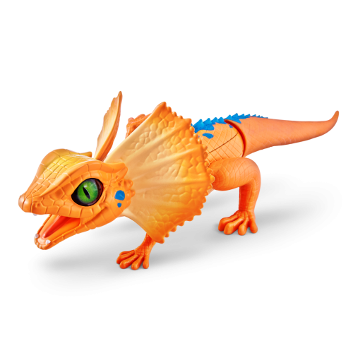 Robo Alive Robotická oranžová jašterica. Oranžová jašterica s modrými škvrnami vyzerá ako živá. Môže skutočne chodiť, behať a pohybovať hlavou.