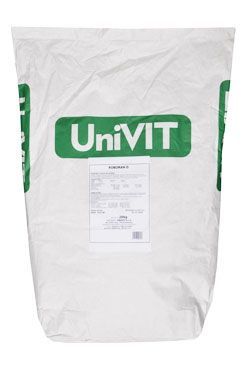 Uhličitan vápenatý, Pšeničná múka kŕmna, Hydrogénfosforečnan vápenatý, Lyzín, Vitamíny - A, D, B2, B12, Stopové prvky - Železo, Zinok, Meď, Mangán, Jód