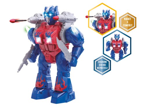 Robot 23 cm na batérie česky hovoriaci chodiaci s doplnkami, svetlom a zvukom