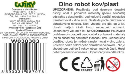 Robot dino 2v1. Materiál kov/plast. Rozmery 7x3x10 cm. Obrázkový návod na zostavenie súčastí. Viac variantov.