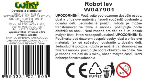 Robot lev Metabeast. Rozmery 15,5x5,5x9,5 cm. 2 varianty - biela, žltá. Obsah balenia - robot, zbrane. Robot sa môže zložiť na leva.
