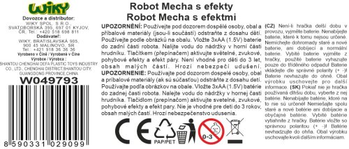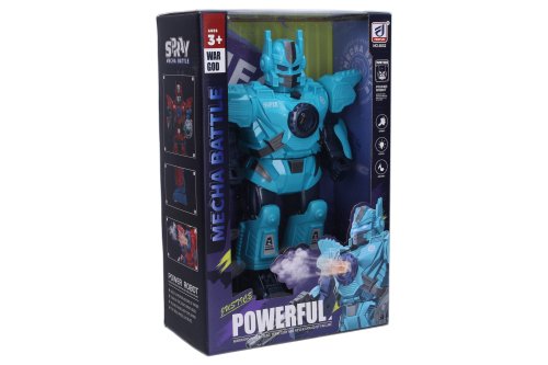 Robot MECHA s efektmi pary modrý. Výška robota 32 cm. Vydáva svetelné a zvukové efekty. Nádržka na vodu je v hornej časti hrudníka. Balenie obsahuje aj štít a zbraň. Priehradka na batérie v zadnej časti robota. 3xAA (1,5V), nie sú súčasťou. Len modrá farba.