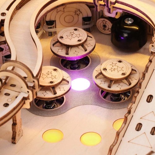 Ak ste fanúšikom klasického pinballu, potom si určite prácu na tejto skladačke užijete. Ide o pinballový automat v štýle vintage, ktorý vás vráti do starých dobrých 90. rokov. Použité motívy akrobatických a kúzelníckych vystúpení Vás zavedú do cirkusovej manéže. Už len samotné skladanie bude zábavné, a čo potom až sa pochválite priateľom či rodine a zídete sa pri hraní tejto hry so všetkými zvukovými a svetelnými efektmi a elektronickým zaznamenaním skóre. Odpáľte guľôčku a sledujte, ktorý cieľ zasiahnete a koľko bodov získate. Na dosiahnutie čo najvyššieho počtu bodov upravte rýchlosť a smer odpalu guličky. Táto skkladačka je nielen zábavný a kreatívny projekt, ale aj skvelý spôsob, ako stráviť čas s rodinou a priateľmi. Jeho unikátny retro cirkusový design dodáva pinballovej hre nostalgickú príťažlivosť. Je vhodná pre všetky kreatívne založené osoby staršie ako 14 rokov. Všetky presné dieliky do seba ľahko zapadnú, aby výsledok bol stabilný a odolný, a to bez použitia lepidla. Skladačka je dodávaná v nezloženom stave, zabalená v krabici s detailným návodom na zostavenie. Hlavné vlastnosti: 482 precízne vyrezávaných dielovzostavenie bez použitia lepidladoba zostavenie cca 12 hodínLED farebné svetelné efektyzvukové efektyregulácia rýchlosti a uhla odpaluvysoká obtiažnosť zostavenímnapájania pomocou USB káblavhodné od 14 rokov