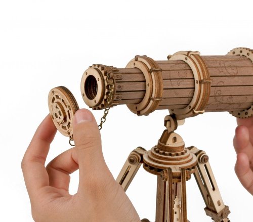 Pre všetky rodené navigátory. Stavebnica monokulárneho ďalekohľadu z preglejky. Dekorovaný pruhom kože so štítkom a krytkou s reliéfom lebky. Je skladný a je dodávaný aj s praktickým skladným statívom. Jedinečný darček pre všetkých milovníkov majstrovania, luxusná interiérová dekorácia do izby či kancelárie. Skladačka je dodávaná v nezloženom stave, balená v krabici. Vybavené detailným návodom na zostavenie. Hlavné vlastnosti: ďalekohľad so statívom315 precízne vyrezaných dielikovstredná obtiažnosť zostaveniedohľadová vzdialenosť 150 m