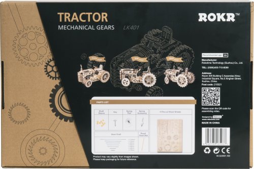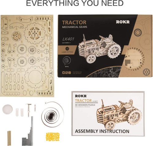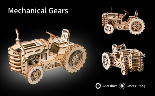 Nechajte sa odviezť do šírych polí, ďaleko od chaosu a ruchu. Stavebnica traktora z preglejky. Jedná sa o robustné a odolné vozidlo vybavené naťahovacím pružinovým pohonom, schopné samostatnej jazdy. Kapotu je možné odklápať a pozorovať pohyb prevodového súkolia. Otáčaním volantu môžete meniť smer jazdy. Model zdobí realistické detaily, ako je sedadlo alebo výfuk. Skladačka je dodávaná v nezloženom stave, balená v krabici. Vybavené detailným návodom na zostavenie. Hlavné vlastnosti: 135 precízne vyrezaných dielikov stredná obtiažnosť zostavenia výsledný model je riaditeľný a schopný samostatnej jazdy