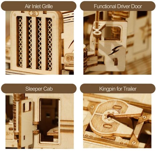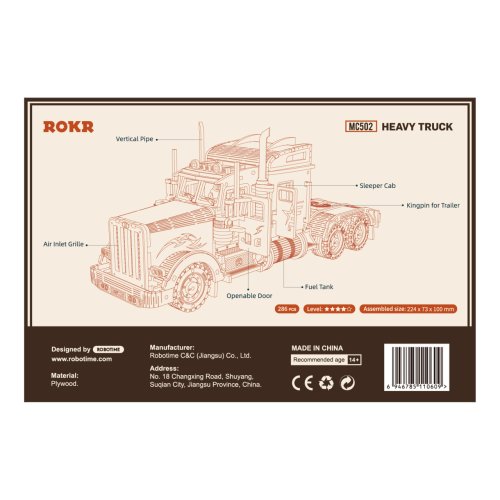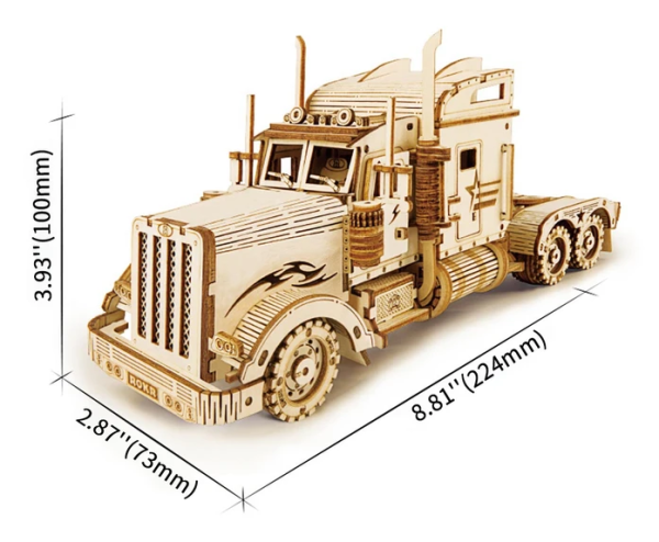 Detailný model amerického ťahača v mierke 1:40 je pohyblivý a vybavený otváracími dverami, môže sa tak stať nielen atraktívnou dekoráciou, ale aj hodnotnou hračkou. Prírodná úprava je univerzálne vhodná do každého interiéru, model však môžete prispôsobiť a nafarbiť podľa vlastných predstáv. Nezabudnite sa nám svojou úpravou pochváliť! Skladačka je dodávaná v krabici spolu s podrobným ilustrovaným návodom na zostavenie. Hlavné vlastnosti:286 precízne vyrezaných dielikovstredná obtiažnosť zostavenieotáčavé kolesá a otvárateľné dvere
