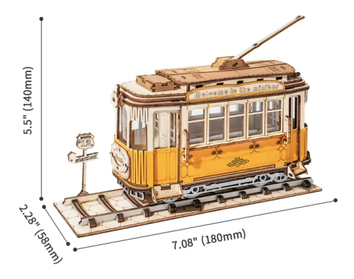 Detailný model historickej električky. Patria do radu skladačiek, ktoré sú určené na vystavenie, nie sú interaktívne a nemajú žiadne pohyblivé diely. Skladačka je dodávaná v nezloženom stave, balená v krabici. Vybavené detailným návodom na zostavenie. Hlavné vlastnosti:145 precízne vyrezaných dielikovstredná obtiažnosť zostavenia