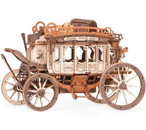 Tento krásny kúsok je inšpirovaný typickými dostavníkmi danej doby. Originálny ozdobný vzhľad je sprevádzaný radom praktických funkcií - robustná odolná karoséria, obrovské kolesá a prívetivý priestor, ktorý pojme všetku Vašu batožinu. Laserom vyrezávané dieliky z 2 mm lipovej preglejky. Jednotlivé dieliky sa vytláčajú priamo z preglejky, postupujte postupne a opatrne. Kvalitné, bezpečné a netoxické materiály. Rozvíja technické myslenie, predstavivosť, cit pre detail a jemnú motoriku. Prekrásny darček pre väčšie deti aj dospelých. Po dokončení pôsobivá dekorácia.
