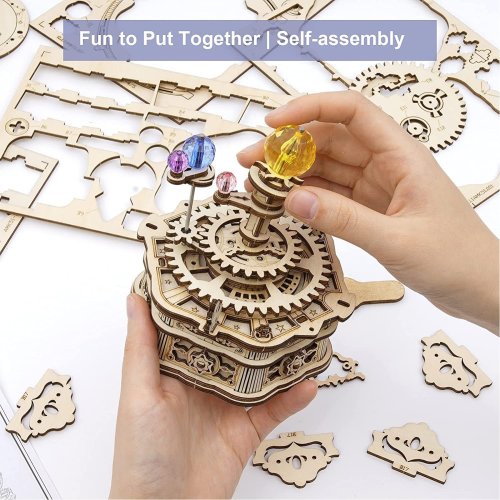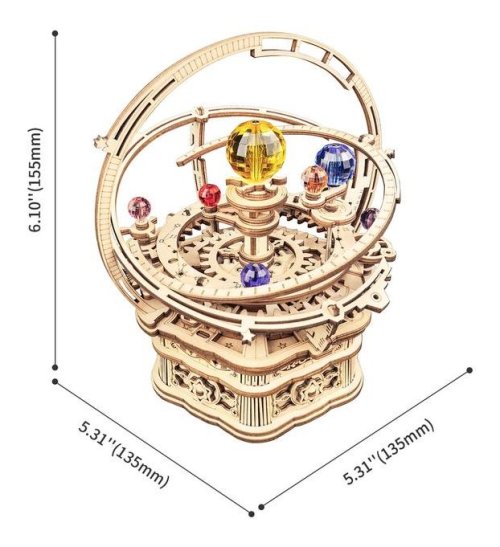 Detailný model jedného z ranných orlojov, pozorujte pohyb planét. Skladačky hracích skriniek Robotime sú ponúkané v mnohých podobách, prírodných aj farebných, líšiacich sa nápaditými pohyblivými detailmi sprevádzajúcimi zvuk. Nezaskočí Vás svojou náročnosťou a po zostavení skrášli poličku. Nechajte sa unášať známymi melódiami, každá skrinka hrá inú, zodpovedajúcu svojej výslednej podobe. Kvalitné naťahovacie 18 tónové strojčeky s japonskými komponentmi zaručujú čistý a dostatočne hlasný prejav. Skladačka je dodávaná v nezloženom stave, balená v krabici. Vybavené detailným návodom na zostavenie. Hlavné vlastnosti:romantická melódia101 precízne vyrezaných dielikovstredná obtiažnosť zostavenia