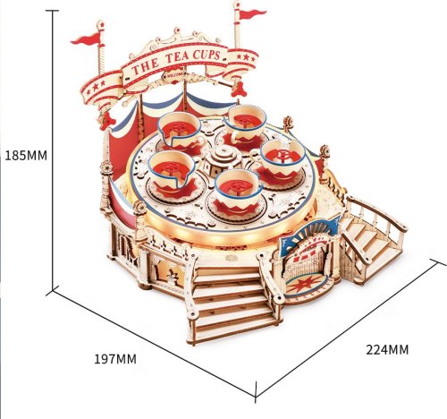 So svetlami a hudbou (skladba: Vietor a mesiac). Rad pôsobivých detailov. Veľa hodín zábavy pri skladaní s kúzlom mechanických prevodov. Laserom predrezané dieliky z kvalitnej lipovej preglejky na stavbu svojpomocne, lepidlo nie je potrebné. Rozvíja technické myslenie, predstavivosť, cit pre detail a jemnú motoriku. Skvelý darček ku všetkým príležitostiam. Prehľadný obrázkový návod krok za krokom.